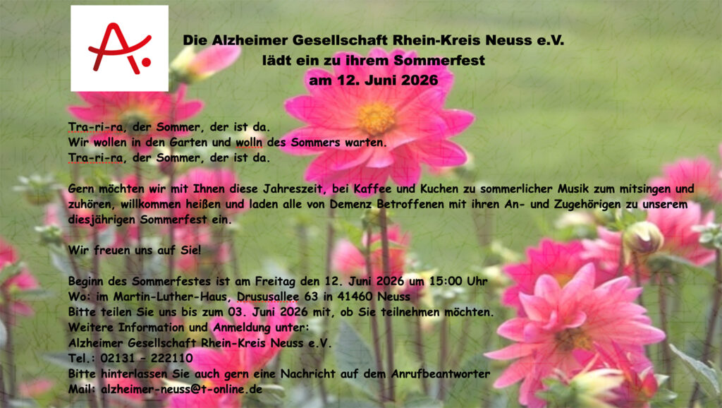Die Diagnose Demenz ist oft ein Schock für die ganze Familie. Demenz ist ein Oberbegriff für Krankheitsbilder mit ähnlicher Symptomatik (wie z.B. die Demenz vom Alzheimer-Typ). Dies führt verständlicherweise zu Ängsten und Unsicherheiten und macht erst einmal hilflos.