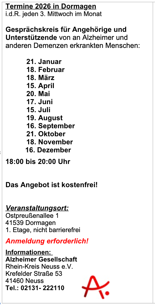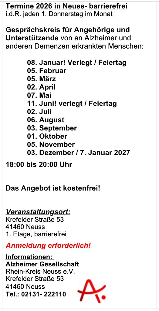 Anmeldung über alzheimer-neuss@t-online.de